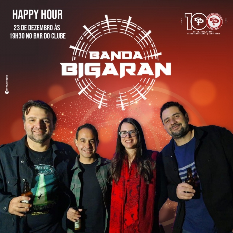 Prepare-se para a programação especial de fim de ano do Clube Penapolense. Em comemoração ao centenário, na próxima quinta-feira, dia 23, a partir das 19h30, tem Banda Bigaran na happy hour do Bar do Clube, apresentando um setlist repleto de clássicos do rock nacional e internacional, com incursões em outros estilos que amamos. Esperamos por você!