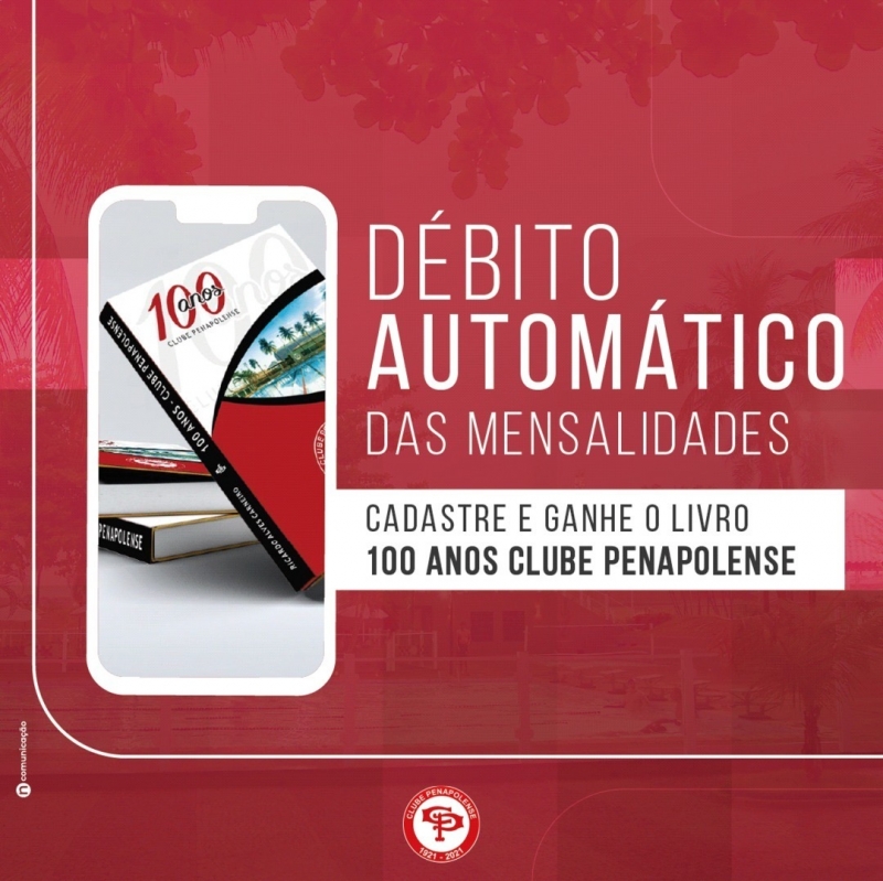 Ganhe um exemplar do livro "100 anos Clube Penapolense" ao cadastrar sua cobrança de mensalidade em débito automático, diretamente na Secretaria do Clube Penapolense. É muito simples e rápido. Ligue 3652-2105 para mais informações. Clube Penapolense: ontem, hoje e sempre.