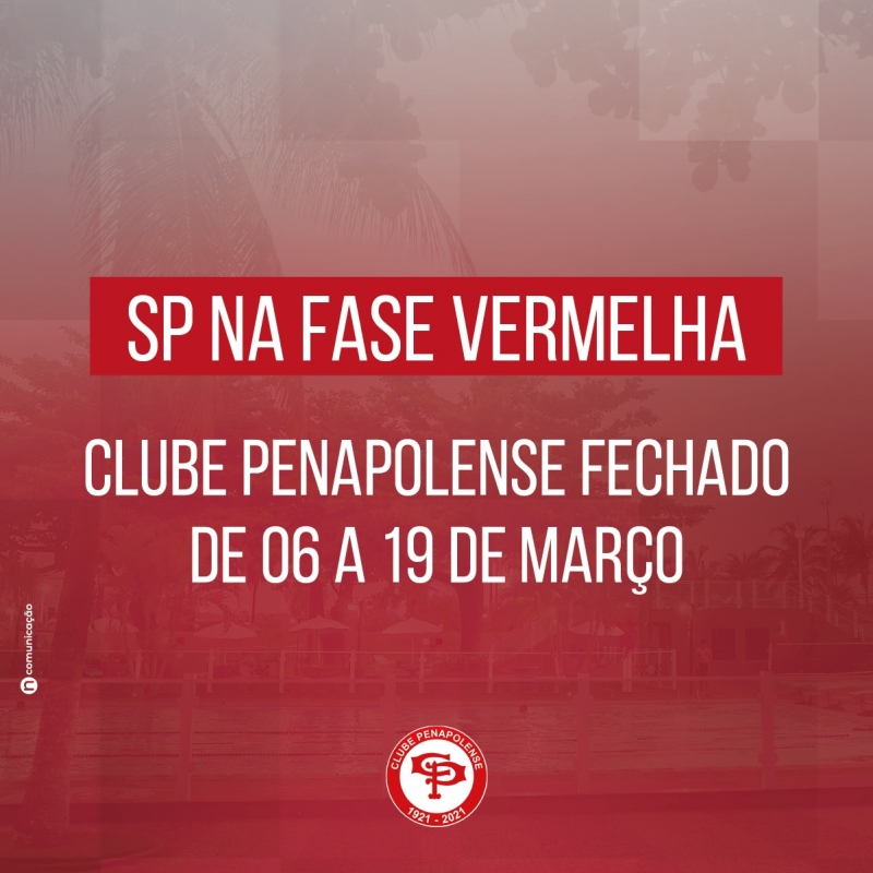 O Clube Penapolense estará fechado neste período. Na fase vermelha, é permitido o funcionamento apenas de setores essenciais, como saúde, educação, segurança pública e privada, construção civil e indústria, logística, abastecimento, transporte coletivo, comunicação social e serviços gerais.