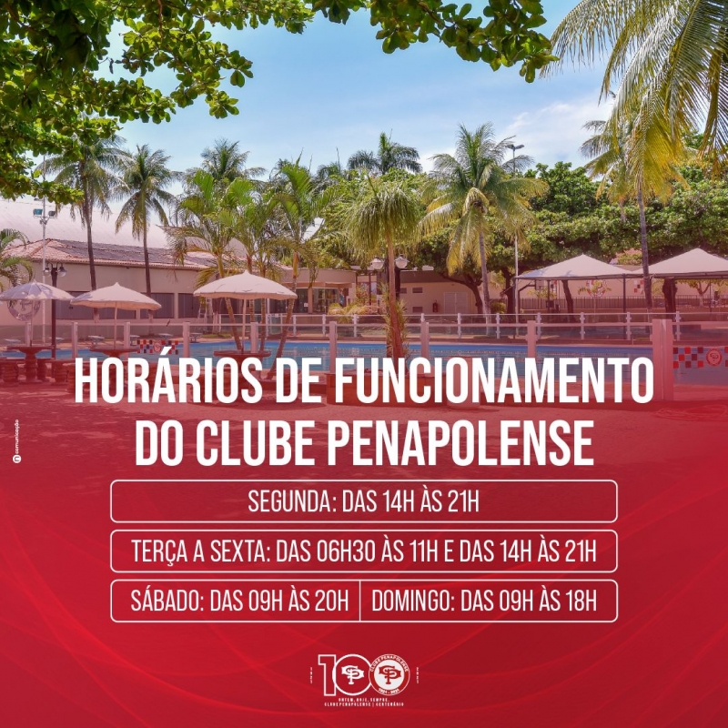 A partir do próximo dia 26 de fevereiro, o Clube Penapolense amplia seu horário de funcionamento aos sábados, das 09h às 20h. Compartilhe com os amigos e aproveite!