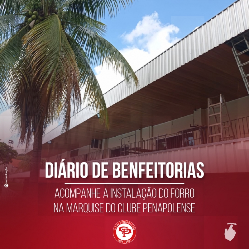 Foi concluída a manutenção no forro da marquise do Clube Penapolense. O reparo foi executado na semana passada e contou com supervisão dos diretores Evandro Leite Fernandes e Evandro Mateus Interdonato.