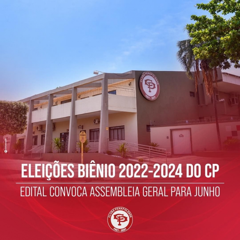 O Presidente do Conselho Deliberativo do Clube Penapolense, no uso das atribuições que são conferidas pelo Artigo 48 do Estatuto Social, CONVOCA os Associados Patrimoniais a participar da Assembleia Geral Ordinária que deverá eleger o Conselho Deliberativo, a Diretoria Executiva e o Conselho Fiscal e de Sindicância do CLUBE PENAPOLENSE para o biênio 2022/2024, a qual se realizará no dia 12 de junho de 2022, das 09h às 17h, na sua sede social, de acordo com o Artigo 47, parágrafo 2º - I.