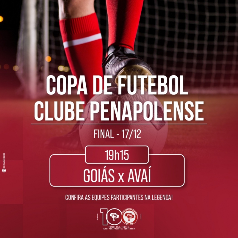 Dia de decisão para os times Goiás e Avaí, que se enfrentam às 19h15, nesta sexta-feira (17), na grande final da Copa de Futebol Clube Penapolense. Traga sua torcida para a arquibancada do CP e comemore conosco na happy hour do Bar do Clube, com som ao vivo de Júlio Gomes. Esperamos por você!