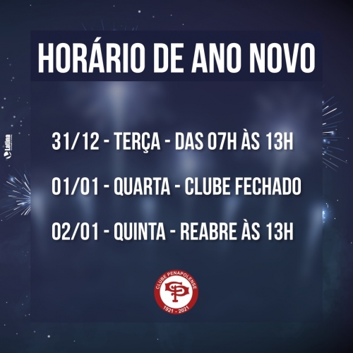 Confira os horários de funcionamento do Clube Penapolense nos dias 31 de dezembro, 1º e 2 de janeiro. 🤓