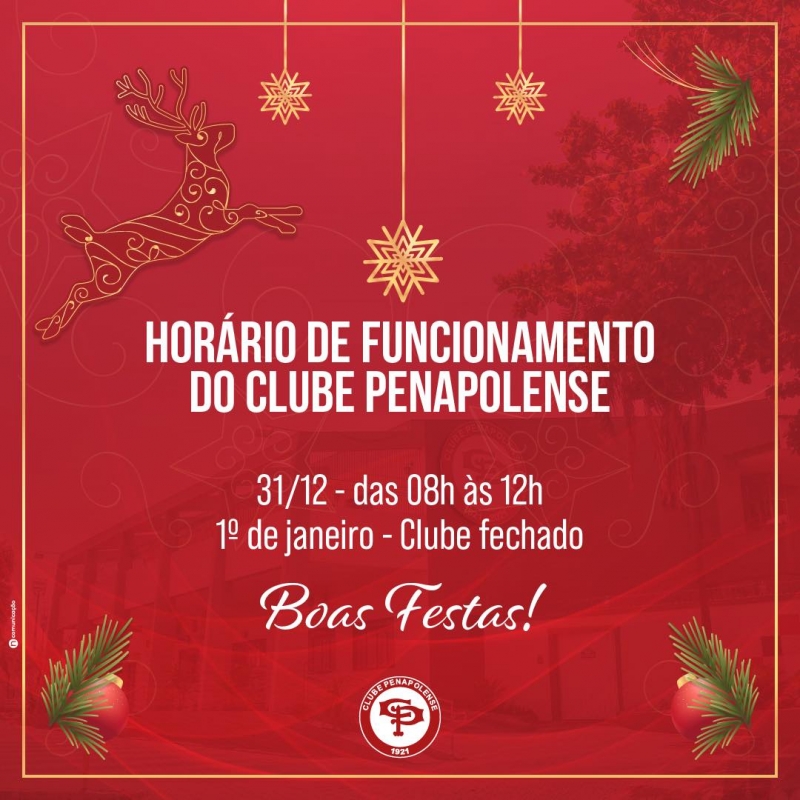As atividades da academia retornam na segunda-feira, em horário normal. Desejamos boas festas a todas as famílias do CP!