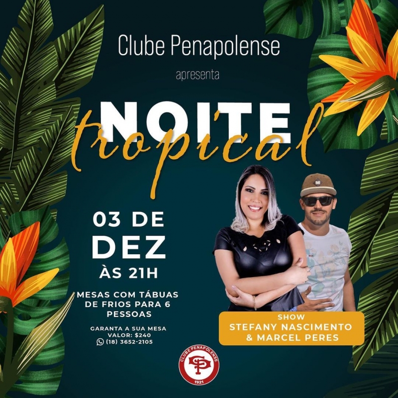 O Clube Penapolense realizou na noite do sábado, 03 de dezembro, um evento pra lá de especial, com show de Stefany Nascimento e Marcel Peres. No Salão Social, todas as mesas contam com uma deliciosa tábua de frios, para dar um sabor especial a esta noite cheia de ritmos.
