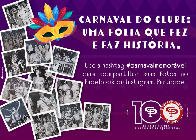 Carnaval do Clube Penapolense: uma folia que fez e faz história. No Facebook ou no Instagram, use a hashtag #carnavalmemorável para compartilhar suas fotos no carnaval mais tradicional da cidade e faça parte do mural comemorativo que ficará em exposição na entrada do Clube Penapolense. Relembrar é reviver lembranças que marcaram nossa vida. Participe!